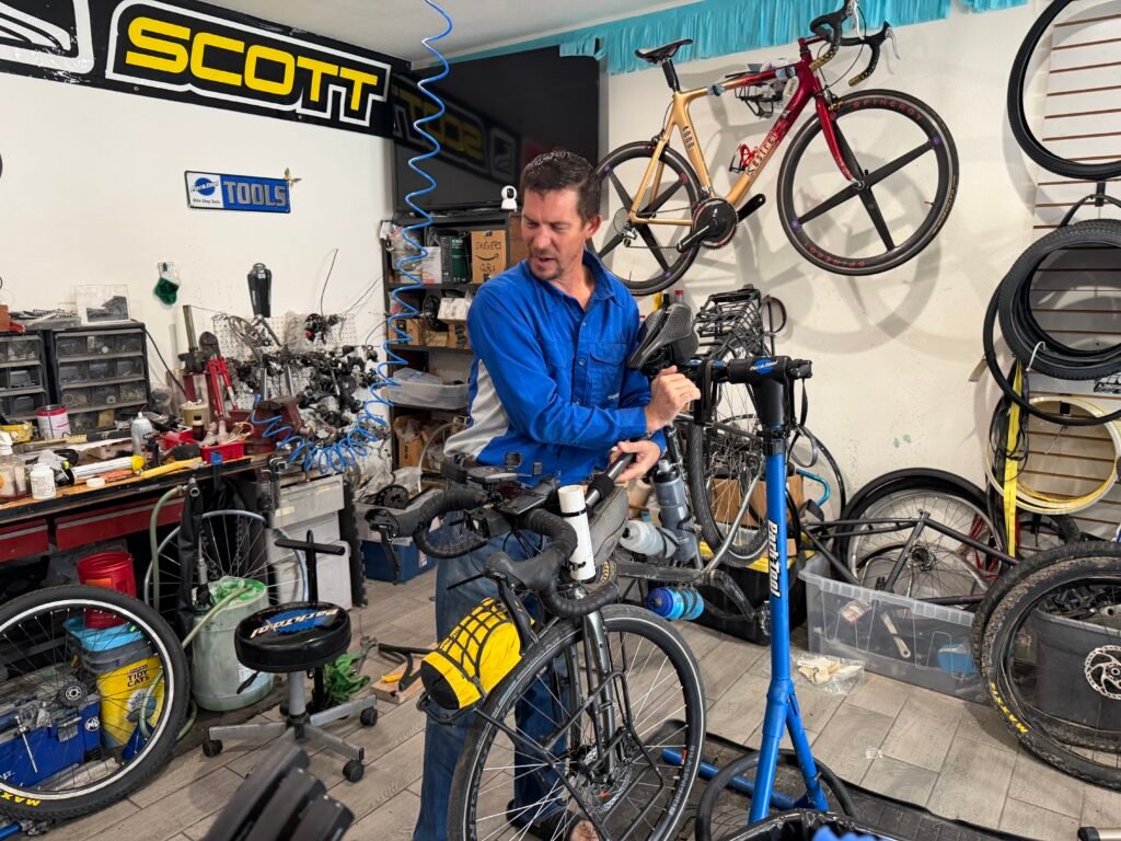 After a huge hotel breakfast (including a Texas-shaped waffle), I spent the morning at Nate‘s Bicycle Shop, where I was the only customer and got a lot of time from Nate. All my packages from Amazon were there except the used iPhone.
