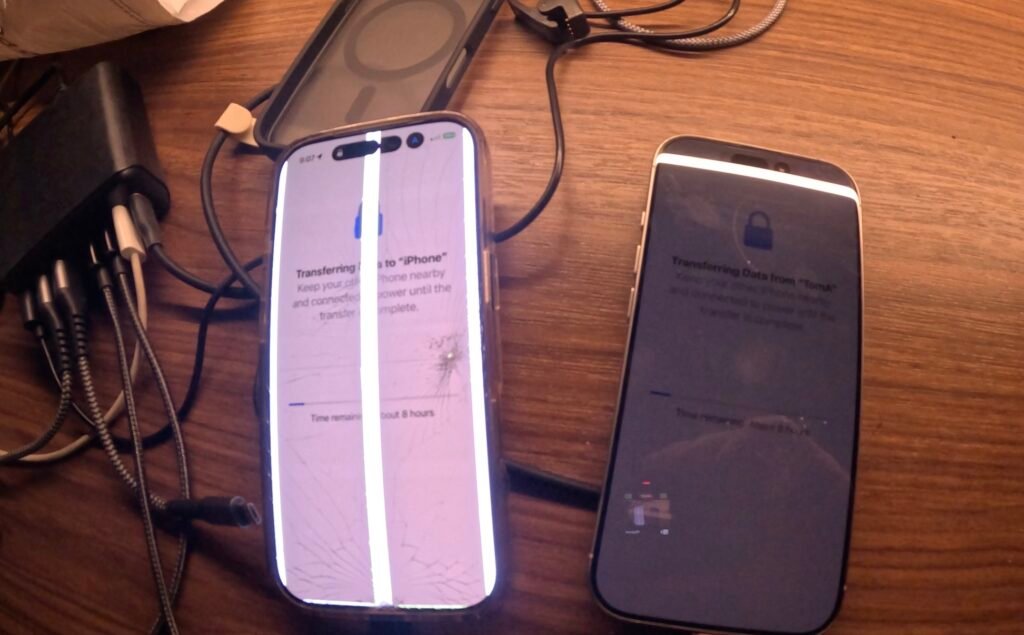 Transferring everything from my broken iPhone 17 to my newly acquired used iPhone 16 was harder than I had expected. When I signed into the hotel yesterday, I didn’t pay the extra $5 for the faster Internet. That turned out to be a mistake — just downloading the optional iOS upgrade (which I shouldn’t have accepted) took over an hour.